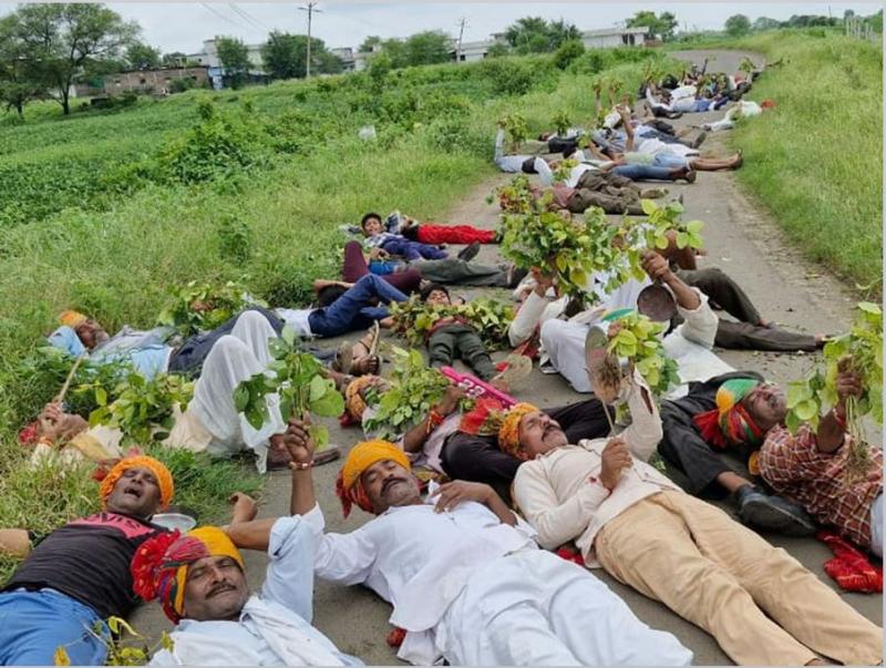 दरअसल, पूरा मामला सीहोर जिले के पीपलनेर गांव का है। यहां के किसानों ने सड़क पर लोट लगाकर अपना विरोध जताया है। इसके पहले किसानों ने विरोध प्रदर्शन करते हुए लंबी रैली भी निकाली थी बाद में सड़क पर लोटकर और हाथ में फसल लेकर प्रदर्शन किया। इस प्रदर्शन को देख हर कोई हैरान रह गया। बताया जा रहा है कि जिले में अलग-अलग जगहों पर किसानों ने प्रदर्शन किया।