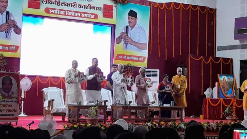 संघ मतलब "वसुधैव कुटुम्ब": कार्यक्रम मे संघ प्रमुख डॉक्टर मोहन भागवत ने काशीनाथ गोरे को श्रद्धांजलि देते हुए कहा कि आजकल आरएसएस के 100 साल की चर्चा होती है. पर ये 100 साल तक का सफर कैसे तय हुआ ये लोगों को पता नहीं है. संघ प्रमुख ने कहा कि ''सभी बाधाओं के साथ संघ के लोगों ने अपने संपर्क को बढ़ाया और संघ आगे बढ़ा. शुद्ध, कर्मठ और अनुशासन के साथ लगातार लोगों के संपर्क में रहकर स्वयं सेवा कर अपने कुटुंब को हमने बढ़ाया''. संघ प्रमुख ने कहा कि ''संघ के लोगों ने अपना कुटुंब, अपना घर से फिर पड़ोस और उसके बाद देश और फिर आगे के लिए हमने काम किया. इसलिए हम कहते है "वसुधैव कुटुम्ब" ऐसा होता है स्वयंसेवक''. संघ प्रमुख मोहन भागवत ने कहा कि काशीनाथ जी भी एक लोकहित कारी स्वयंसेवक थे. उन्होंने हर जगह अपना धर्म निभाया. संघ प्रमुख ने कहा ऐसा नहीं है कि हर कोई काशीनाथ बन जाए पर सभी को स्वयंसेवक होना चाहिए.