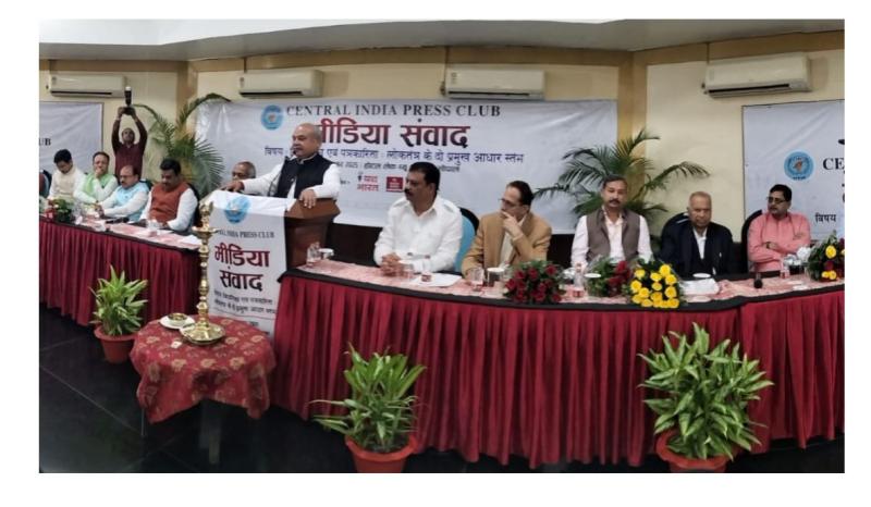 मुख्य अतिथि नरेंद्र सिंह तोमर व नेता प्रतिपक्ष उमंग सिंघार के साथ भोपाल में सशक्त मीडिया संवाद