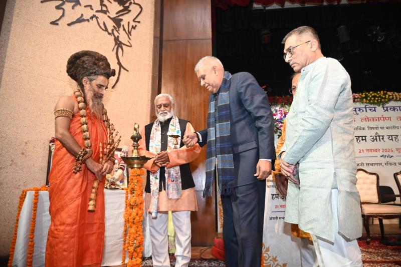 भोपाल। सुरुचि प्रकाशन की ओर से रवींद्र भवन में राष्ट्रीय स्वयंसेवक संघ के वरिष्ठ प्रचारक डॉ. मनमोहन वैद्य की पुस्तक 'हम और यह विश्व' का विमोचन कार्यक्रम का आयोजन किया गया। इस कार्यक्रम में भारत की मूल अवधारणा, आत्मगौरव, सांस्कृतिक चेतना और अध्ययनशील परंपरा पर व्यापक चर्चा हुई। इस अवसर पर श्री आनंदम धाम आश्रम, वृंदावन के पीठाधीश्वर श्री ऋतेश्वर जी महाराज, पूर्व उपराष्ट्रपति श्री जगदीप धनखड़, जागरण के समूह संपादक श्री विष्णु त्रिपाठी, सुरुचि प्रकाशन के अध्यक्ष श्री राजीव तुली और लेखक डॉ. मनमोहन वैद्य ने अपने विचार प्रकट किए।
