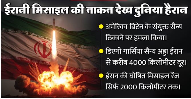 वॉशिंगटन|ईरान ने एक ऐसे हथियार का इस्तेमाल किया है जिसने पूरी दुनिया की चिंता बढ़ा दी है। अमेरिका और ब्रिटेन के संयुक्त सैन्य ठिकाने डिएगो गार्सिया पर ईरान ने मिसाइल हमला कर अपनी ताकत का बड़ा संकेत दिया है। यह हमला इसलिए ज्यादा खतरनाक माना जा रहा है क्योंकि यह बेस ईरान से करीब 4000 किलोमीटर दूर है, जो उसकी घोषित मिसाइल रेंज से कहीं ज्यादा है।