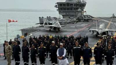 ऑपरेशन सिंदूर के जश्न में INS विक्रांत पहुंचे राजनाथ सिंह, वीर जवानों का किया सम्मान