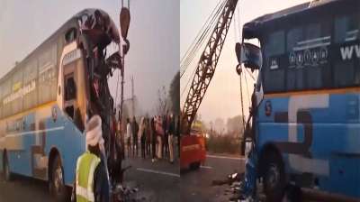 उज्जैन महाकाल दर्शन उपरांत कोहरे के कारण दिल्ली जाते समय राजस्थान मे हुई बस दुर्घटनाग्रस्त
