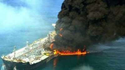 ओमान की खाड़ी में ऑयल टैंकर में आग