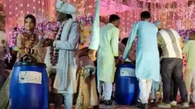हमीरपुर शादी में अजीबो-गरीब गिफ्ट, दूल्हा-दुल्हन को दोस्तों ने दिया 'नीला ड्रम'
