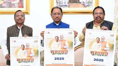 रायपुर : मुख्यमंत्री विष्णु देव साय ने आज मुख्यमंत्री निवास कार्यालय में मकर संक्रांति के शुभ अवसर पर छत्तीसगढ़ के रजत जयंती वर्ष 2025 के शासकीय कैलेंडर का विमोचन किया। ...