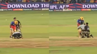 सिक्योरिटी तोड़कर मैदान में विराट कोहली से मिलने पहुंचा फैन, छुए पैर, लगाया गले